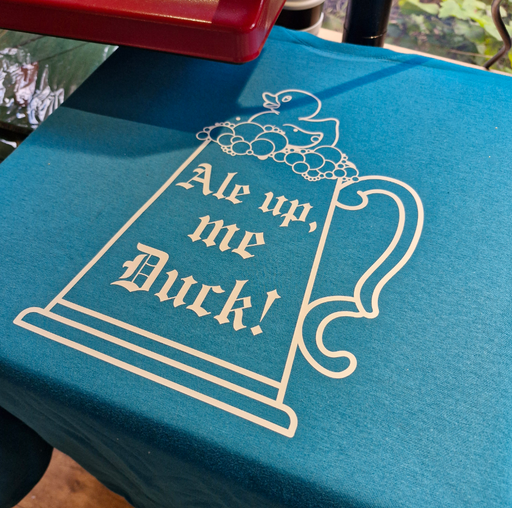 Ale up me duck! Get ready for beer festival season! 100% Pre-shrunk ringspun cotton T-shirt, teal with white colour print. All sizes are unisex. ...