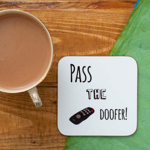 The doofer is the TV remote control! These coasters have a high gloss wipe-clean finish, which shows off the design perfectly. Made from:Wooden ba...