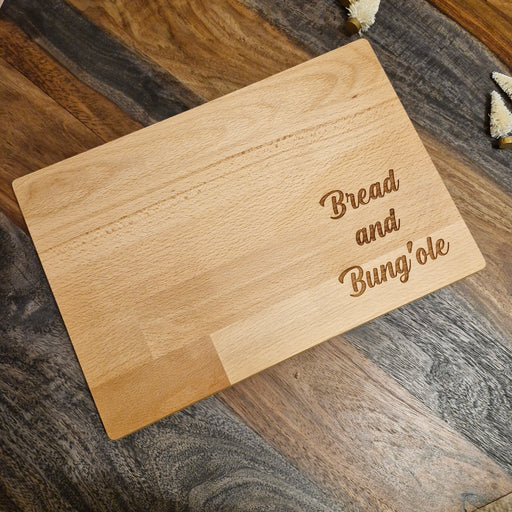 Bung'ole, an old word for cheese. Used in places like Ilkeston and parts of Lincolnshire. This chopping board measures approx 12x8 inches