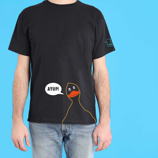 Ayup 'peeking' duck! Heavy-weight 100% cotton circle of ducks T-shirts. Black t-shirts with duck design All sizes are unisex. Size GuideS 34/36"...