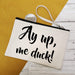 100% Cotton canvas make up bags, printed with 'ayup, me duck!' on one side.