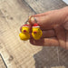 Add a splash of festive cheer to your style with these adorable cute yellow Santa duck earrings!