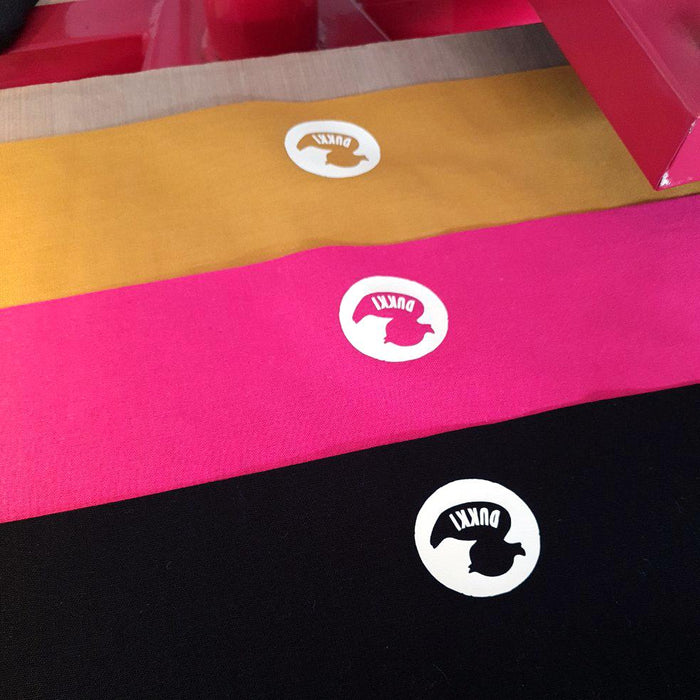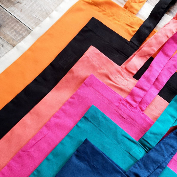Tote Bags available in various different colours, with white or black print as standard. See examples.