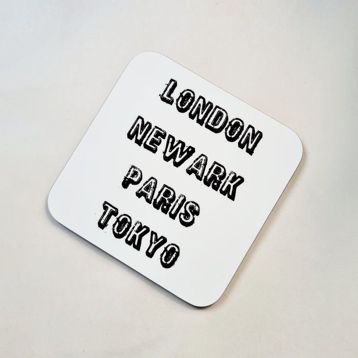 90x90mm hardboard coasters, with a printed gloss wipe-clean surface. You can choose any place name you like on these coasters and if we haven't got it listed, just gerrin touch, me duck!