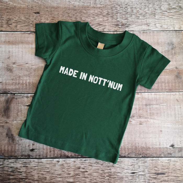 100% Cotton Kids T-shirt. Sizes 2 - 11 years. Forest Green with white print, as standard.