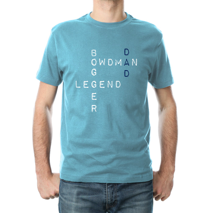 100% Heavy weight cotton T-shirts. Available in a pale blue with white and navy print